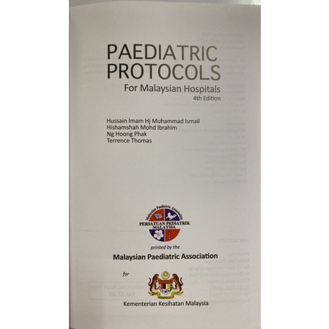 Paediatric Protocols For Malaysian Hospitals 4th Edition Obatan Store